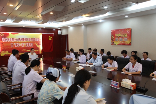 为庆祝中国共产党建党95周年,并将“两学一做”学习教育引向深入,7月5日,市血液中心党总支隆重举行了庆祝建党95周年表彰大会暨“两学一做”党课教育活动,中心37名党员参加并聆听党课。