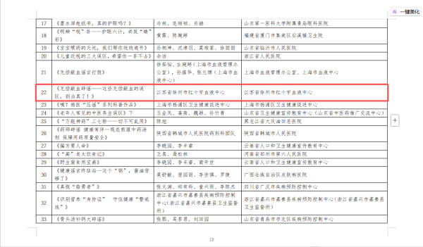 近日,由国家卫生健康委、国家中医药局、国家疾控局、全国总工会、中国科协共同组织开展的“健康知识普及行动——2025年新时代健康科普作品征集活动优秀作品”评选结果揭晓,市血液中心一项作品获辟谣类优秀作品。