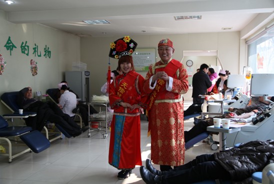 在今天第一拨献血的人群中,志愿者刘林涛、褚影、胡铭珊同时榜上有名。他们不仅在采血点忙前跑后为献血者端茶倒水,现身说法宣传服务,也带着自己的家人共同献血,度过蛇年的第一天。“志愿者们以无偿献血和做义工的方式过年,觉得特别有意义。”志愿队大队长孔令喜如是说。这位“全国优秀志愿者”、献血状元一大早就赶到献血屋,并对志愿者做了明确分工,一切都在有条不紊第进行着。