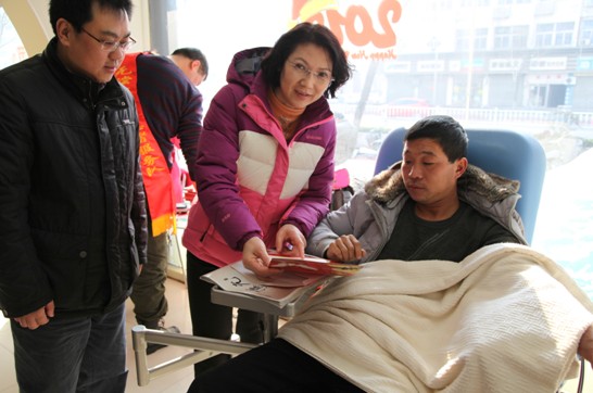 爆竹声中辞旧岁,欢歌笑语迎新春。大年初一上午,市血液中心主任毕星秀,带领领导班子全部成员和军中献血形象大使王顺利,亲自到各献血点看望了无偿献血者、坚持在岗位上的工作人员和同样放弃节假日休息的志愿者。