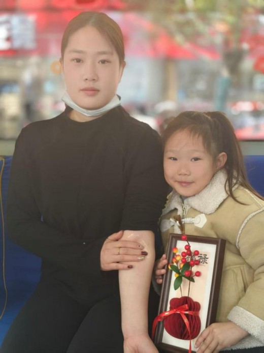 周玉涵轻轻摸了摸女儿的头,温柔地说:“妈妈不怕呀。我们献出的这一点点血,可能会救到另一个需要帮助的人,就像超人一样厉害呢。”当采血针轻轻扎进手臂,女儿没有害怕躲开,反而伸出小手,紧紧握住妈妈的手:“妈妈,我陪着你,我也不害怕。”童言稚语也透露出孩子的天真善良。
