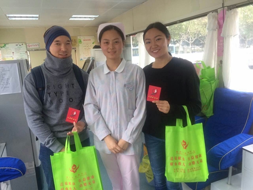今天,矿大献血车上迎来了两位特殊的献血者,他们是中国矿业大学的留学生,来自俄罗斯的小伙子阿拉斯(Iskakov Aidos)和来自哈萨克斯坦的姑娘米拉(Iskakbayeva Minuara)。米拉告诉我们,他们因为害怕而站在献血车前犹豫了很久,但是最终爱心战胜了恐惧,他们在相互的鼓励下走上献血车,开始了第一次献血之旅。在献血过程中,米拉和阿拉斯一边用所会不多的中文和护士交流着,一边用手比划着,眼神中传递着自己第一次献血时的激动心情。其实,当我们看到一汩汩充满爱心的热血从不同肤色的臂膀中流出之时,已被他们深深感动。生命的意义在于奉献,在于和他人共享生命的感动,虽然我们来自不同的国度,但我们都在同一片蓝天下,都怀着一颗相同的爱心。